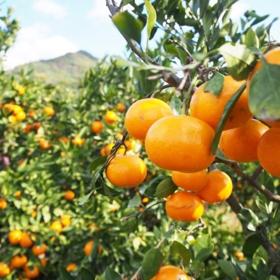 太陽がたっぷり当たる段々畑で、一年間をかけて丹念に育て上げたみかん。